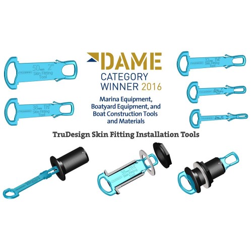 TruDesign Skin Fitting Install Tools allow the installation of a Skin Fitting to be carried out by a single person. A second person will not be needed to hold the Skin Fitting in place on the outside of the hull and stop it from turning whilst the first person on the inside of the hull tightens the Skin Fitting Nut. These tools also act as a holder to make applying sealant or epoxy to the Skin Fitting easier as well as keep work areas and hands clean.